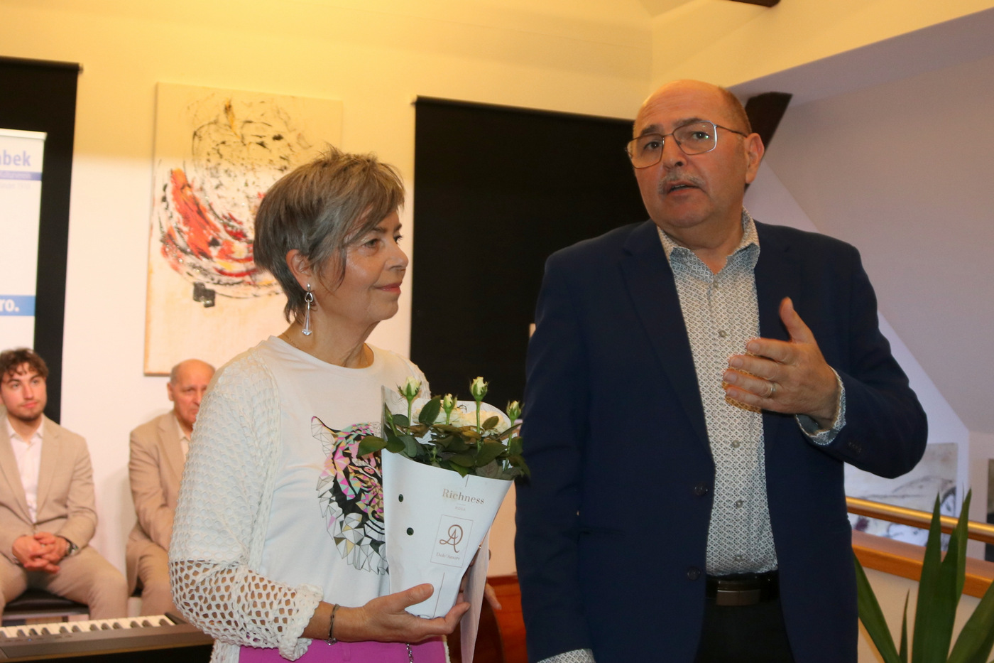 V petek, 20. marca 2026 je Hiša kulture v Žvabeku vabila na razstavo umetnice Mire Blažej iz Galicije. Umetnico je predstavila Justi Hribernik, glasbeno pa odprtje popestrila skupina Sanje. Lepo število prijateljev in znancev umetnice, umetnikov iz celega okraja in častnih gostov je počastilo prireditelje s svojim obiskom.