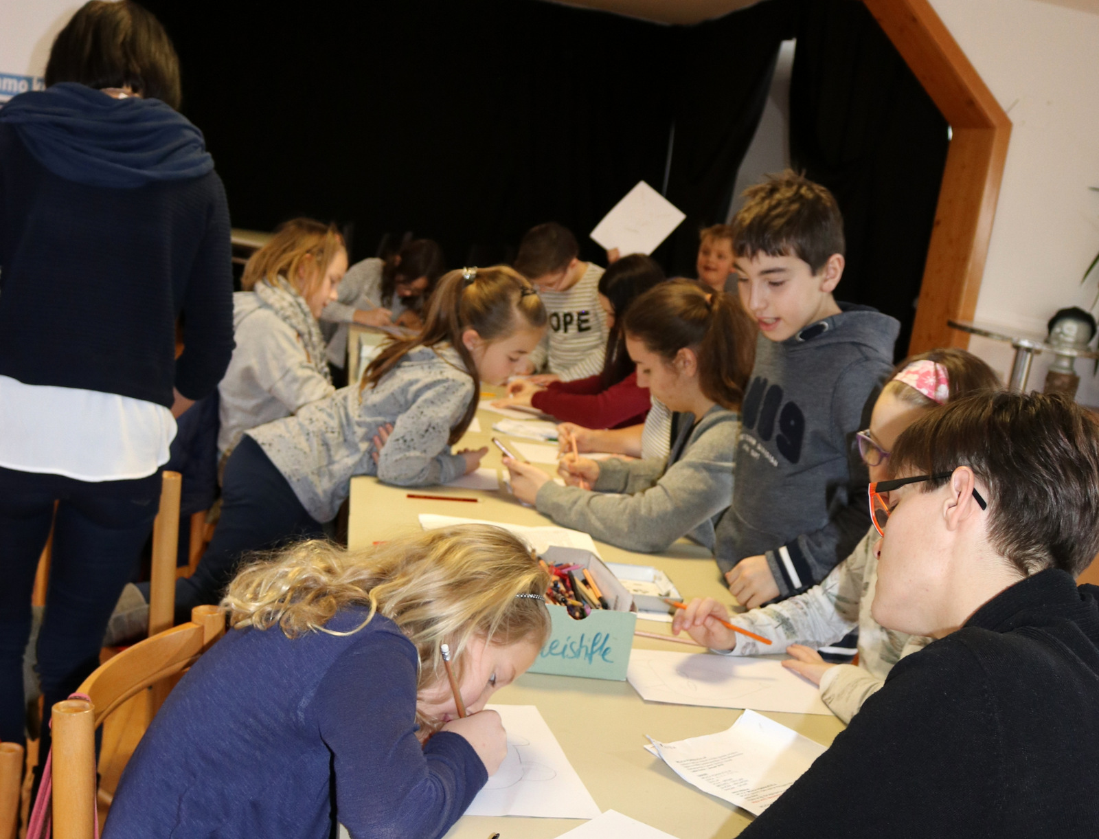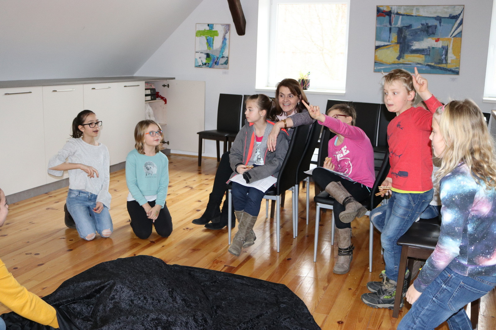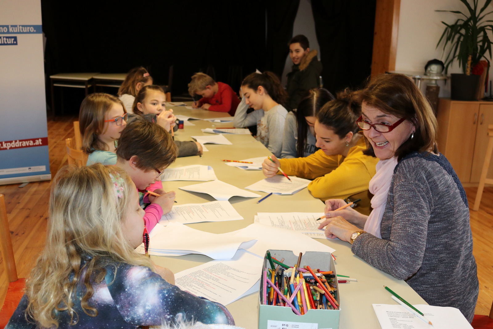 Ein Live-Hörspiel der Gruppe „Lutke Suha“ begeisterte am Freitag die zahlreichen Gäste im Haus der Kultur/Hiša kulture in Schwabegg. Das Hörspiel von Vinko Möderndorfer hat Vida Logar mit den Kindern einstudiert. Bügermeister Gerhard Visotschnig betonte in seiner Ansprache die große Bedeutung von Sprachen für die Zukunft der Kinder und Jugendlichen. Auf großes Interesse stieß der Auftritt des Ensembles „Sanje“ unter der Leitung von Dr. Engelbert Logar. Die Künstlerin Katja Kozjek Varl aus Maribor sprach an ihrem letzten Ausstellungstag von der großen Bedeutung grenzüberschreitender Kulturarbeit. Obmann Leonhard Katz sowie seine Vizeobmänner Jokej Logar und Valentin Hirm konnten auch zahlreiche Ehrengäste begrüßen. Die Veranstaltung besuchten Pfarrer Michael Golavčnik, der Gastwirt Franz Steharnig, die Oberärztin Irene Logar, die Pfarrgemeinderätinnen Irene Wagner und Martina Urban……